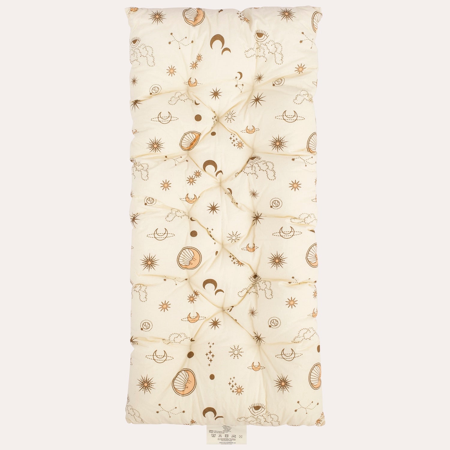 Wir haben die Matratze gemeinsam mit Eltern weiterentwickelt, um höchsten Komfort mit maximaler Sicherheit zu vereinen. Der Bezug ist fest mit der Füllung vernäht – so bleibt alles an seinem Platz, auch nach häufigem Gebrauch. Die Größe von 35 × 80 cm passt perfekt in unsere Federwiege.