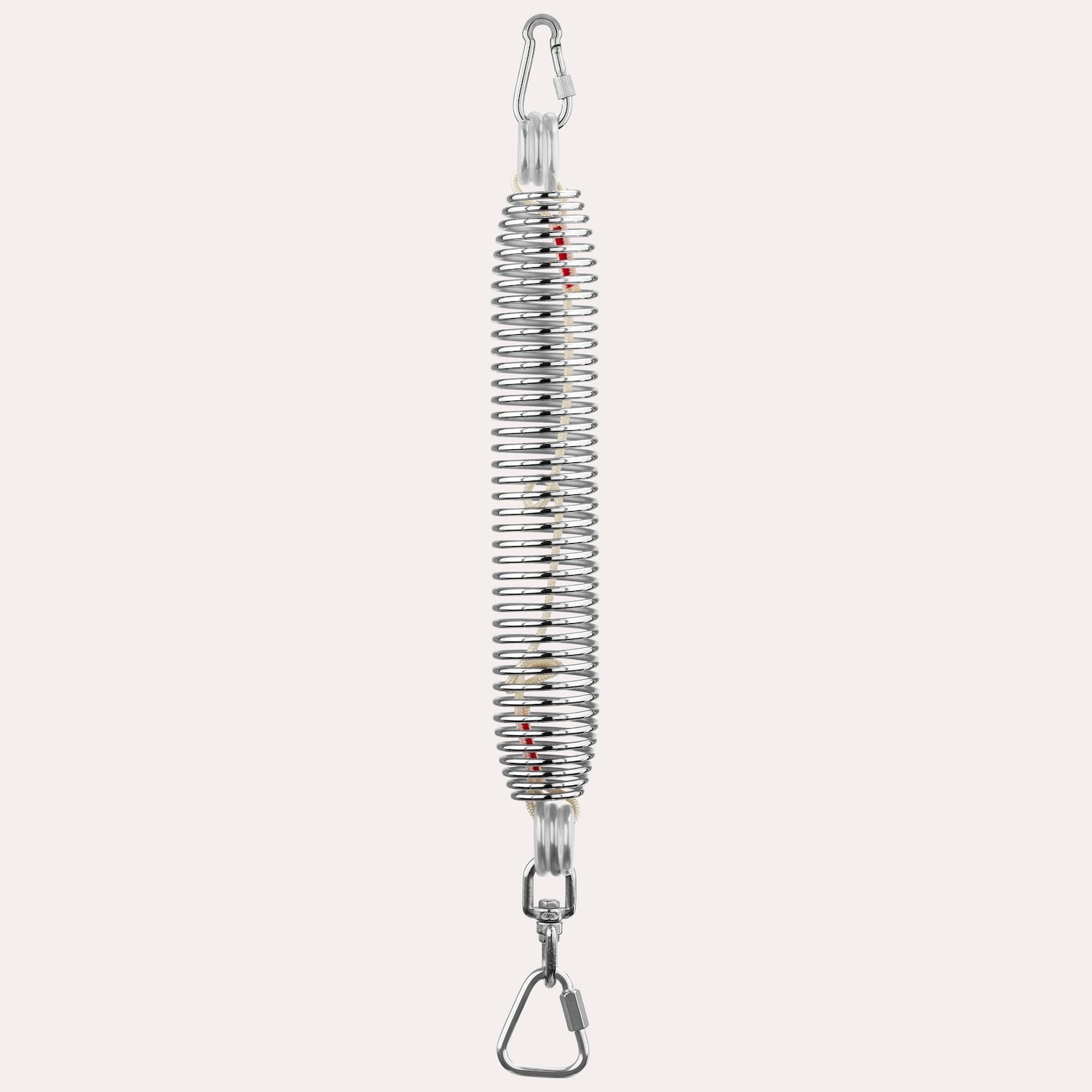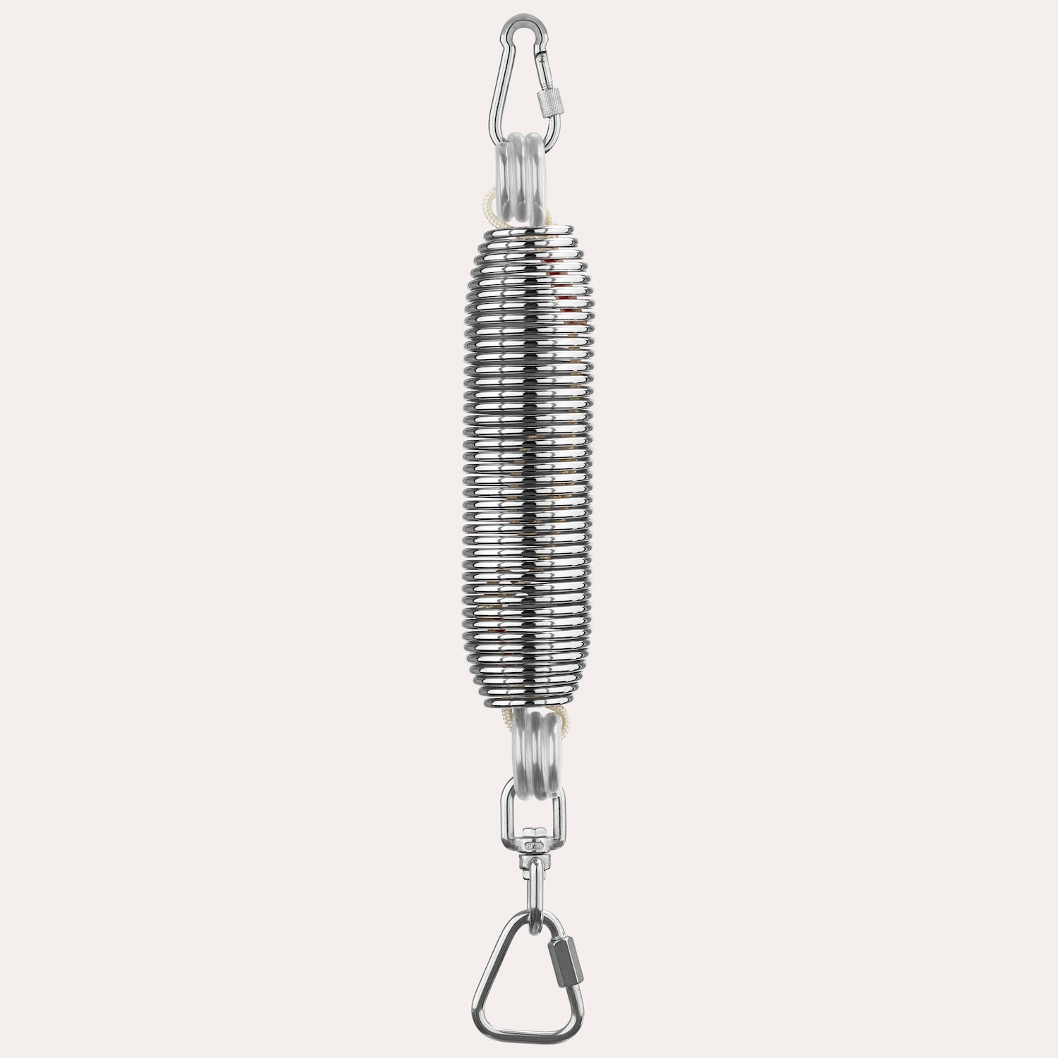 1 x Zugfeder für Federwiegen mit einem Karabiner und einem Dreieckkarabiner.